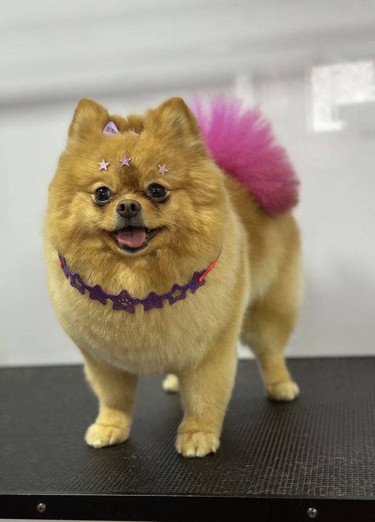 Luxurious cleansing shampoos and conditioners to suit coat type/skin condition, warm blow dry and brush out, ears cleaned, nails cut, sanitary areas and pads shaved clean, hair around the eyes trimmed and neat round paws trimmed, all finished with a spritz of animal friendly cologne. We also provide de-shedding of your dog free of charge (if your fluffy friend needs it), removing most of their hair and undercoat that is ready to fall out.