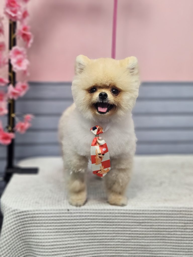 Some fun play time, one luxurious cleansing shampoo using puppy shampoo, gentle warm blow dry and brush out, gentle ear clean, gentle nail cut, a little trim around the sanitary areas, pads and around the eyes alongside neat round paw trimming, all finished with a spritz of animal friendly cologne, a tasty treat and lots of photos for the pet parents. Please note that grooming of your pup is only possible two weeks after their second vaccine.